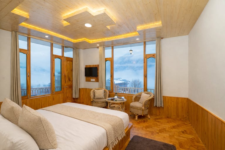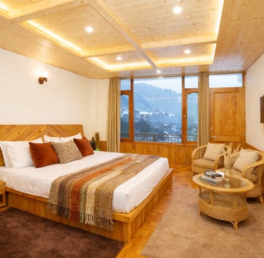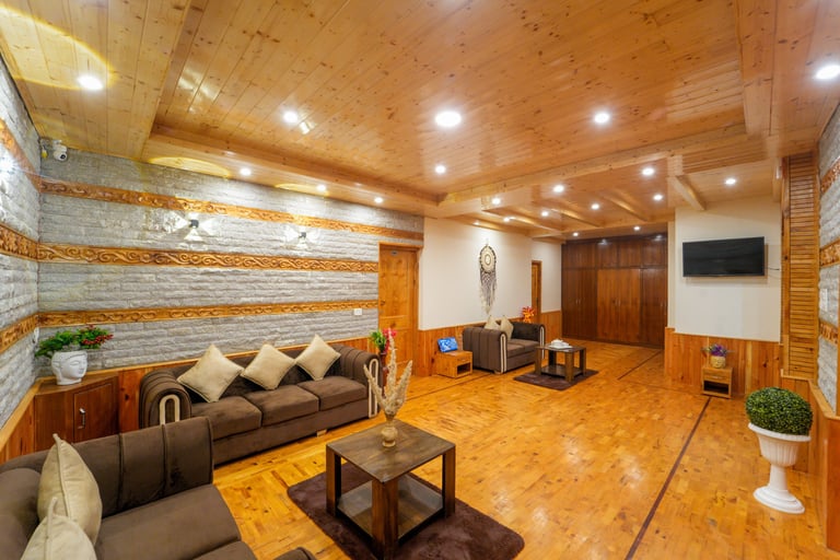 Enjoy a comfortable stay in our private cottage in Manali for family and group stays, featuring modern amenities, scenic views, and a peaceful mountain environment.